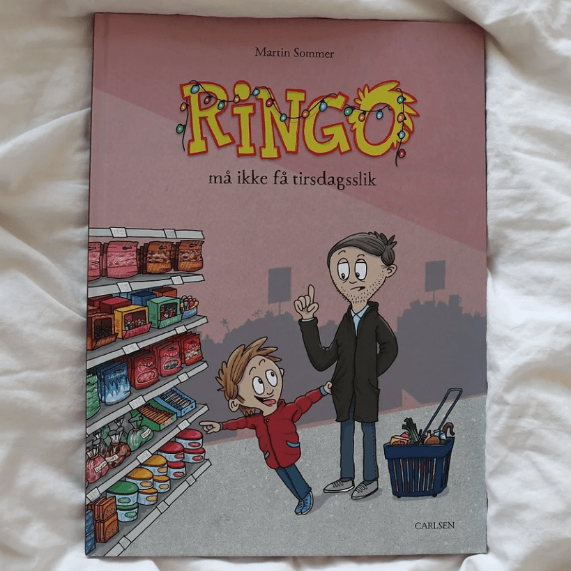 Ringo må ikke få tirsdagsslik er en børnebog af Martin Sommer, som tidligere har skrevet bogen Ringo må ikke få firkantede øjne (2021). Martin står også bag Instagramprofilen @jegfinderselvud, som jeg længe har fulgt og finder ret sjov. Derfor var jeg også nysgerrig på hans børnebøger.
