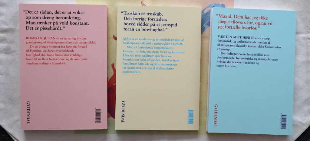 Jeg har læst tre bøger fra Gyldendals Shakespeare genfortalt-serie, der sigter mod at bringe de klassiske skuespil ind i nutiden og gøre dem tilgængelige for et ungt publikum.
