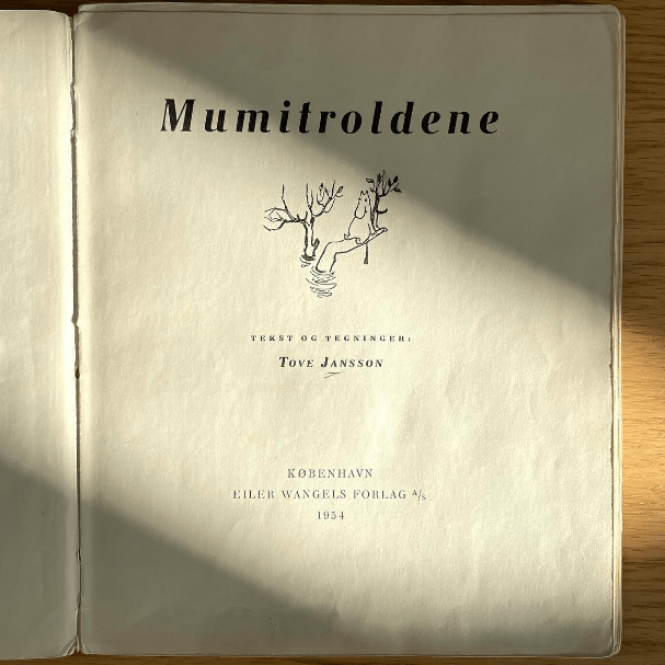 Derfor begyndte jeg med denne bog — den første Mumibog på dansk med titlen Mumitroldene fra 1954 (originalt 1945). I nyere udgaver går bogen (så vidt jeg kan læse mig frem til) under navnet Mumitrolden – de små trolde og den store oversvømmelse.